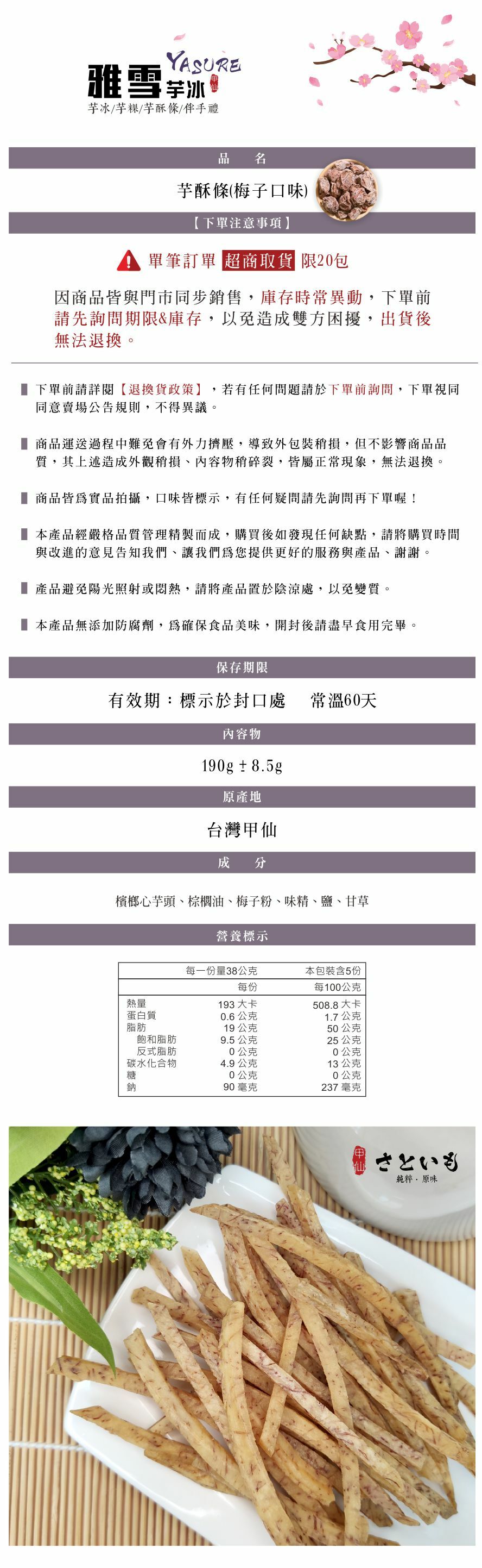 芋酥條口味: